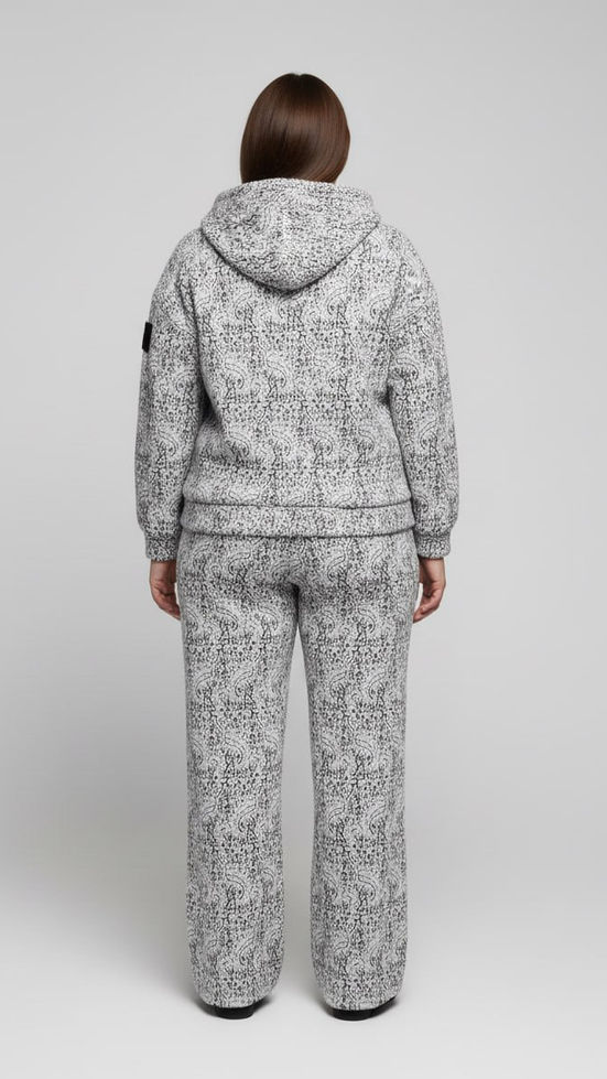 Taş Rengi Astarlı Güpür Desenli Kapüşonlu Takım